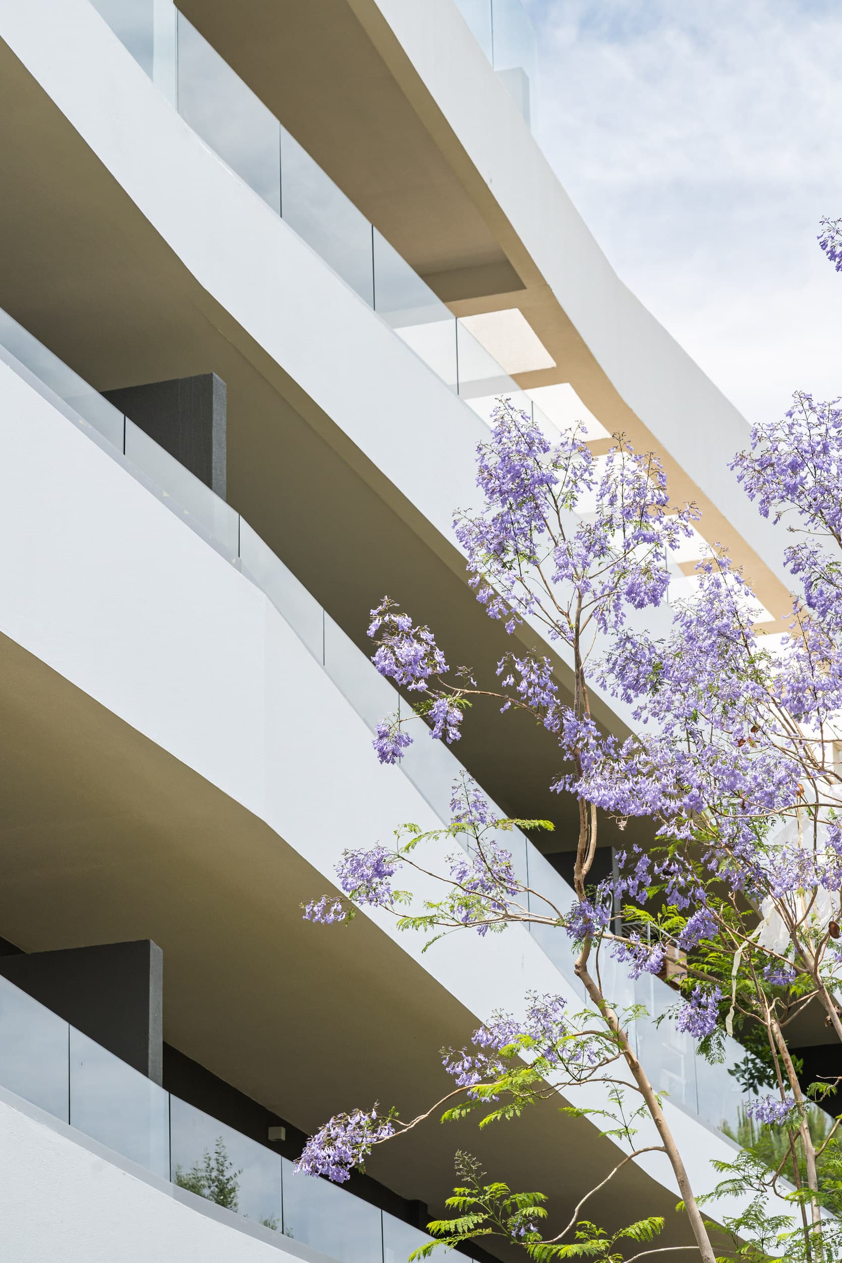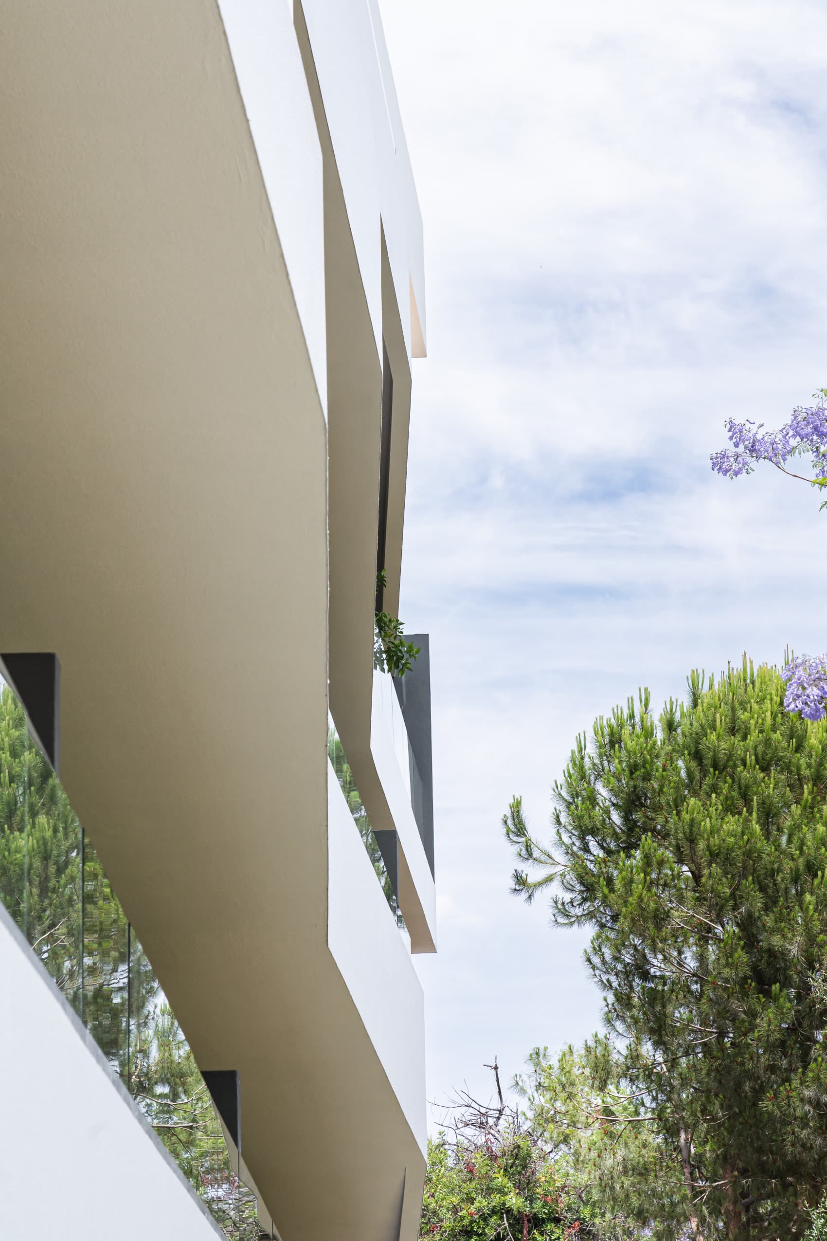 Mantendo as mesmas considerações de enquadramento no local do Império, que se traduzem nas semelhantes escolhas cromáticas, pretendeu-se dinamizar os alçados, nomeadamente ao nível dos balanços das varandas assim como na composição das guardas. A desconstrução num alçado bastante dinâmico permitiu assumir a referência icónica do edifício.